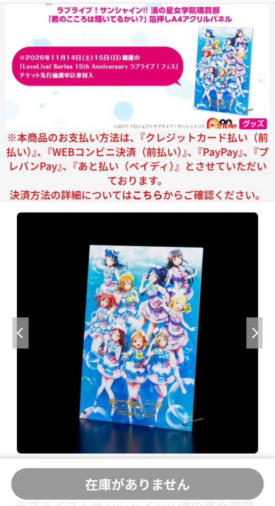 【ラブライブ!】15周年ラフェス先行のAqoursのアクリルパネルが売り切れてるのだけれど…
