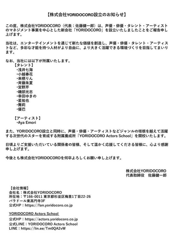 【ラブライブ!】新生StarRise(YORIDOCORO)の所属タレント