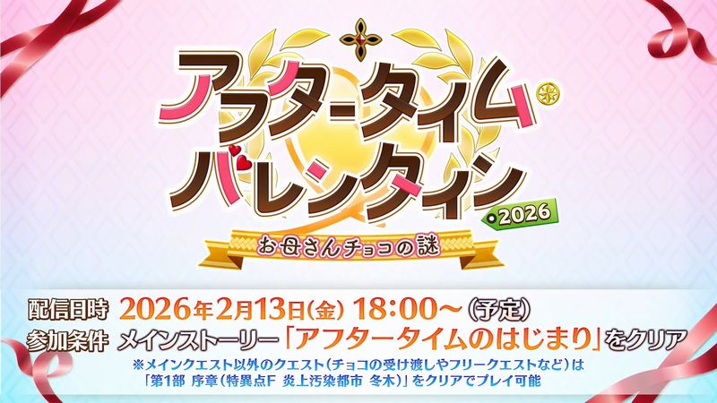 【FGO】「アフタータイム・バレンタイン2026 ~お母さんチョコの謎~」に関わるデータ通信量の増加について公式よりお知らせ。一括ダウンロードによるアプリの総容量は約30GBとなります