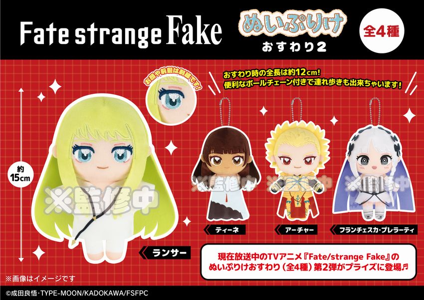 TVアニメ『Fate/strange Fake』ぬいぷりけおすわり(全4種)第2弾がプライズに登場。2026年夏ごろより株式会社フクヤから順次展開予定!