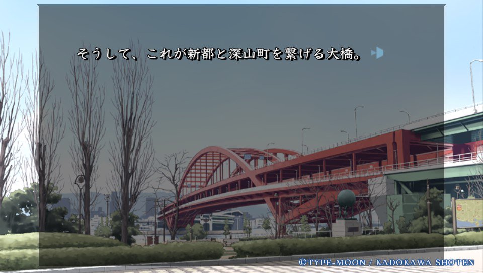 【Fate】新都と深山町を結ぶ冬木大橋。都市つくりの観点からは橋がひとつだけというのは違和感ある