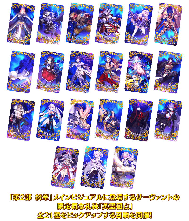 【FGO】『「第2部 終章」開幕! 英霊極点ピックアップ召喚』開催!メインビジュアルに登場するサーヴァントの限定概念礼装「英霊極点」全21種類ピックアップ!