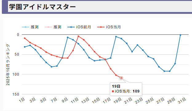 【アイマスセルラン】学マス105位デレステ299位ミリシタ300位シャニマス376位シャニソン608位