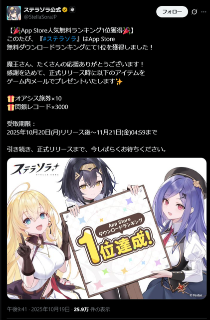 【速報】「ステラソラ」セルラン1位達成!かと思ったらダウンロードランキングだったわ