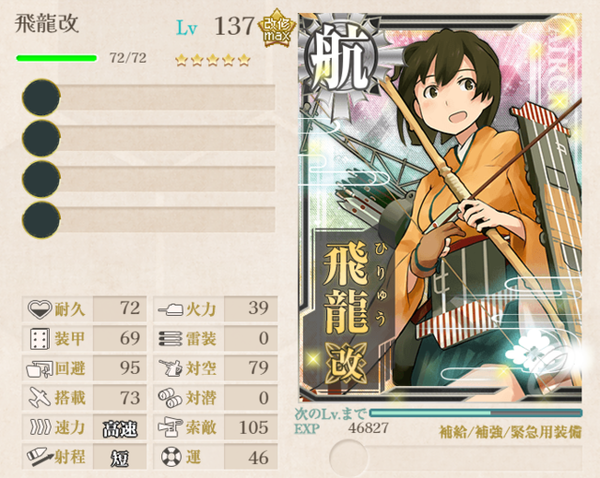 【艦これ】そういや飛龍のスロットは5つになるんかな?