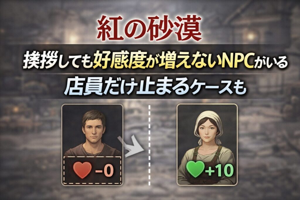 【紅の砂漠】挨拶しても好感度が増えないNPCがいる 店員だけ止まるケースも