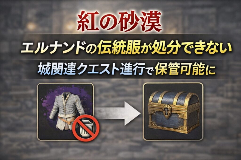 【紅の砂漠】エルナンドの伝統服が処分できない 城関連クエスト進行で保管可能に
