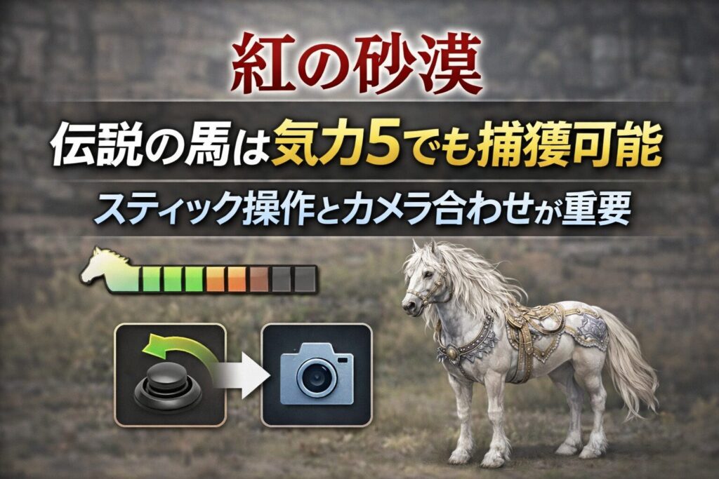 【紅の砂漠】伝説の馬は気力5でも捕獲可能 スティック操作とカメラ合わせが重要