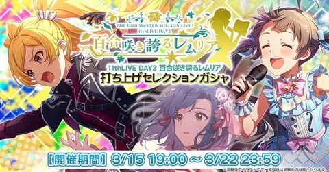 【ミリシタ】『11thLIVE DAY2 百合咲き誇るレムリア打ち上げ セレクションガシャ』開催!!