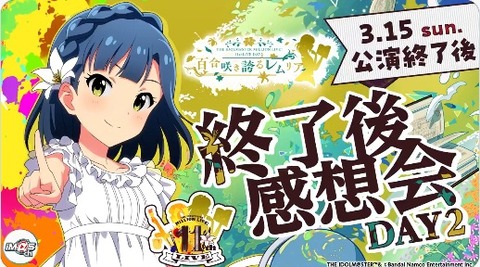 【ミリシタ】3/15(日)公演終了後~ 『11thLIVE DAY2 百合咲き誇るレムリア 終了後感想会』
