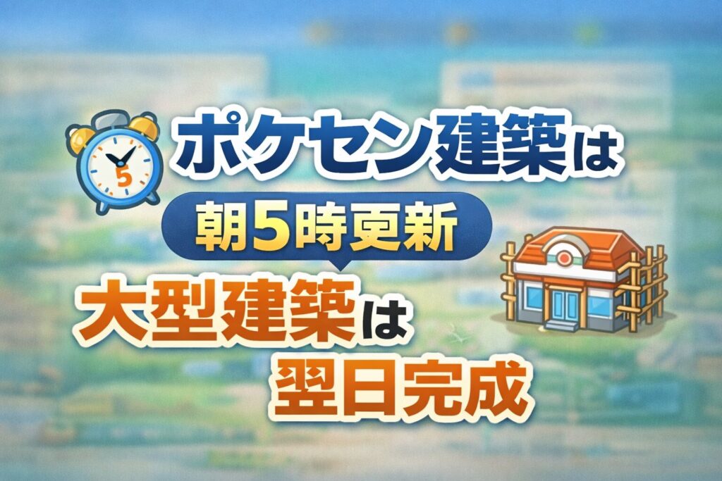 【ぽこあポケモン】ポケセン建築は朝5時更新 大型建築は翌日完成