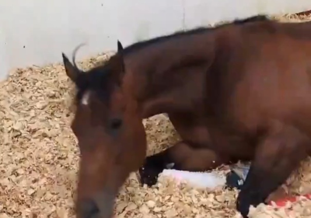 【競馬】馬房でゴロゴロするフォーエバーヤング