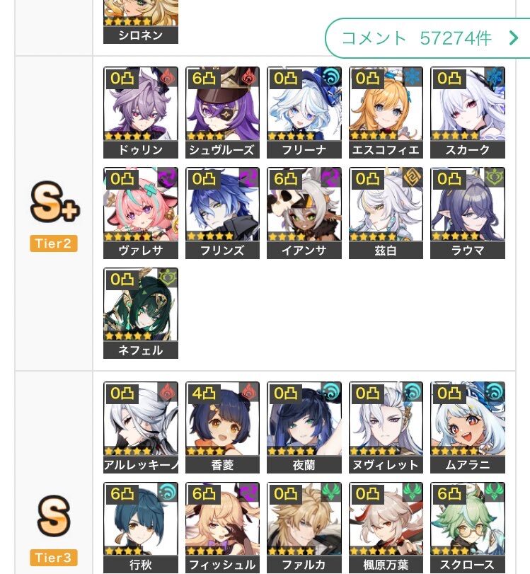 【原神】最新アタッカーランキングのファルカ…