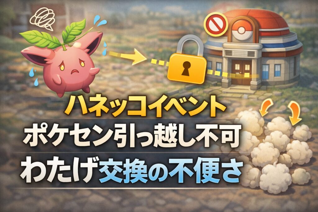 【ぽこあポケモン】ハネッコイベントでポケセン引っ越し不可 わたげ交換の不便さ