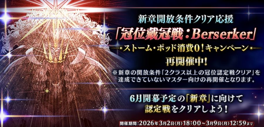 【FGO】新章開放条件クリア応援キャンペーンで「冠位戴冠戦バーサーカー」は周回されますか?