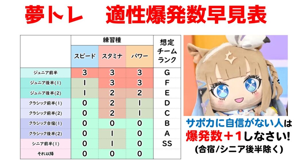 【Dreams】ドリトレ 最適爆発数早見表