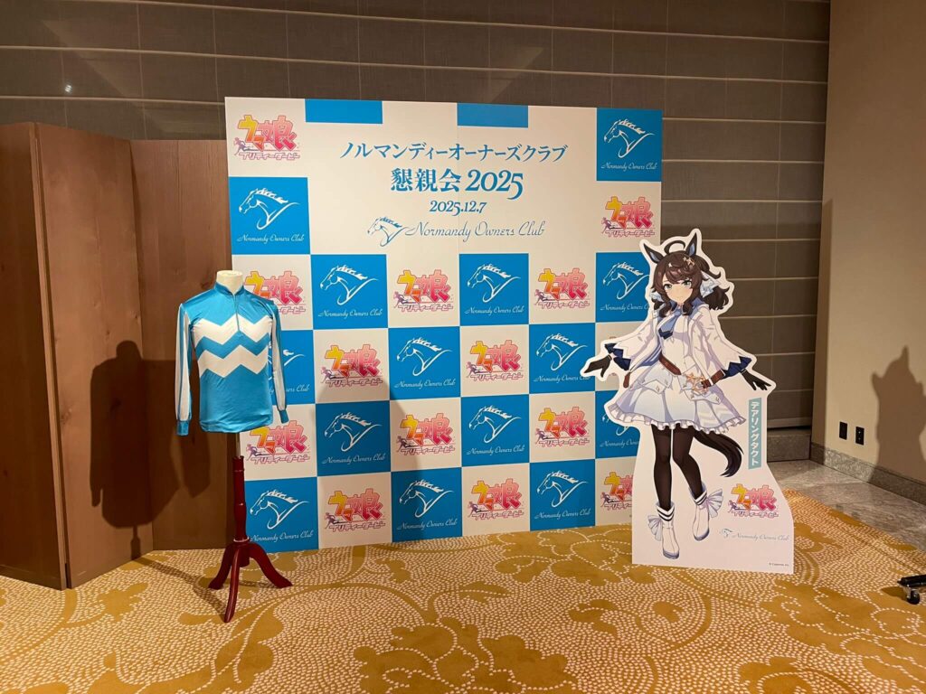 【ウマ娘】ノルマンディー懇親会で展示されるデアリングタクトのパネルと流れるうまぴょい伝説