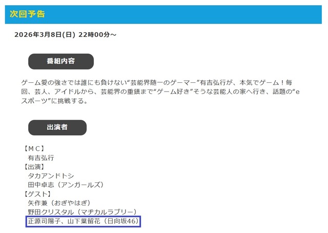 次回の「有吉ぃぃeeee!」に日向坂46メンバー2名が出演!