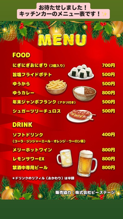 【AKB48】12月13日(土)・14日(日)『2ショット写真会』のキッチンカーメニューがこちら