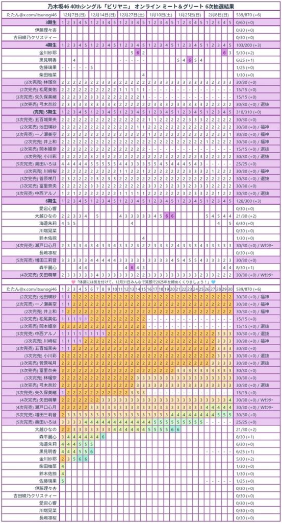 乃木坂46・40th「ビリヤニ」ミーグリ6次完売表
