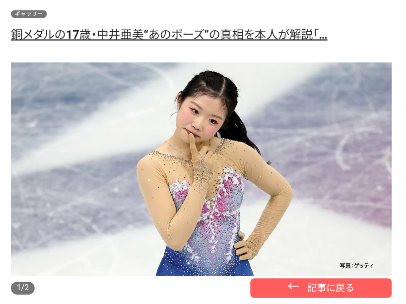 【フィギュア】銅メダルの17歳・中井亜美 “あのポーズ”の真相を本人が解説「“惜しかったな〜あとちょっとだったな〜”という感じ」