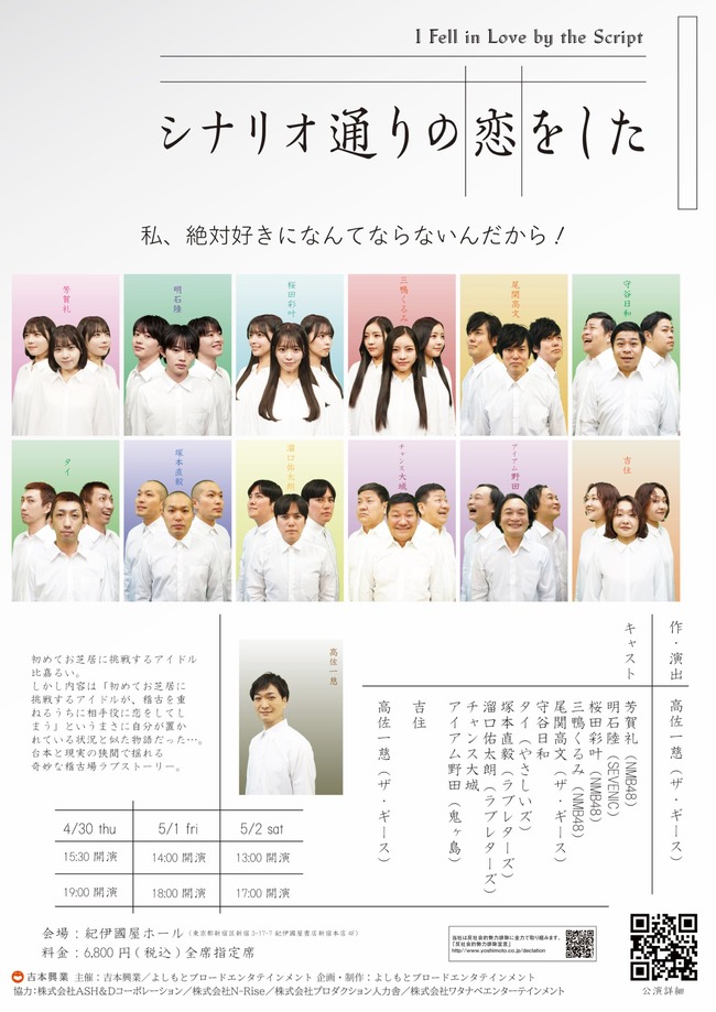 【NMB48】桜田彩叶、芳賀礼、三鴨くるみが舞台『シナリオ通りの恋をした』に出演
