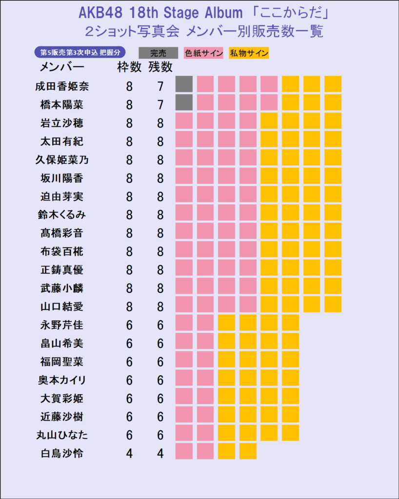 【最終受付中】AKB48 18th Stage Album「ここからだ」発売記念 2ショット写真会 メンバー別 販売数早見表