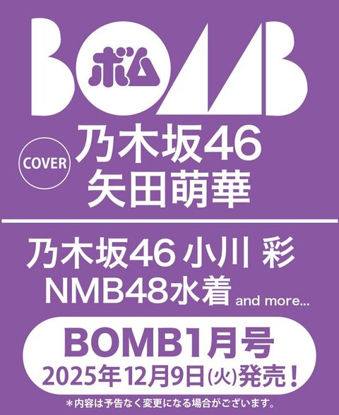 矢田萌華が『BOMB 1月号』表紙!【乃木坂46】