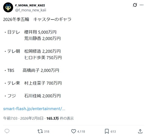高橋尚子さん、五輪キャスターのギャラ2000万www