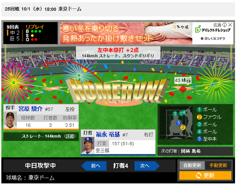 【悲報】9回2死1塁、5点差で福永裕基が2ランホームラン打った時の中日ファンwwww