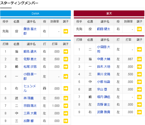 【悲報】楽天イーグルスさん、今日のDeNA戦でスタメンに左打者を8人も並べてしまう【藤浪】