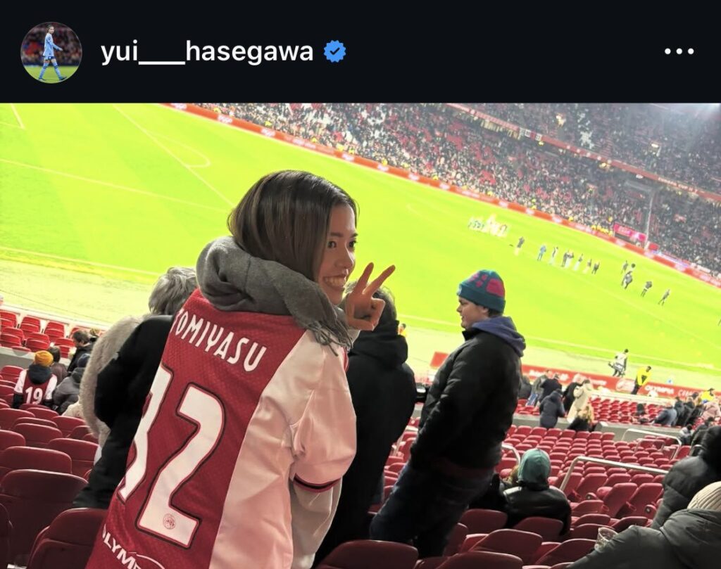 【朗報】長谷川唯、富安健洋のユニを着て試合観戦wwww