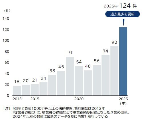 【社会】従業員「退職」で倒産、 2025年は124件 過去最多を大幅更新