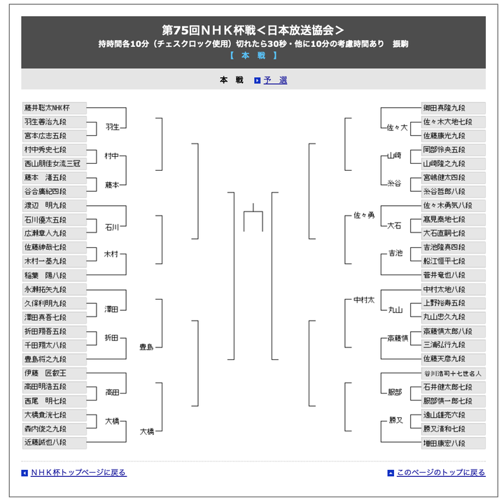 【NHK杯トーナメント】藤本渚六段ー村中秀史七段
