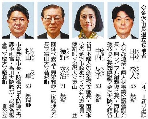 【統一教会元会長落選を喜ぶ声】金沢市長選 現職が得票率68%超で再選