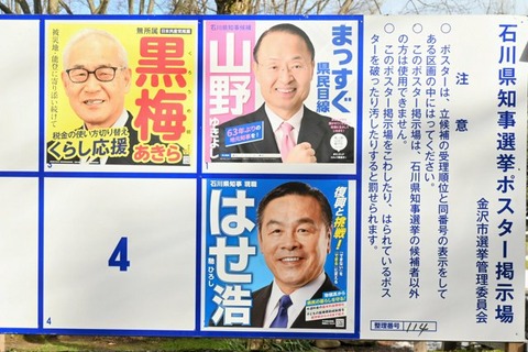 【サナエ効果なし】石川県知事選 山野之義氏が現職馳浩氏を破り初当選