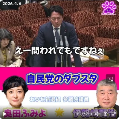 【自民党のダブスタ】奥田ふみよ議員と伊勢崎賢治議員とで対応変わる筆頭理事と小泉防衛相【動画】