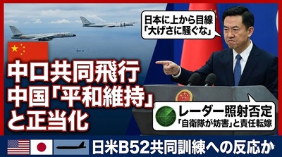 【速報】中国外務省、中露爆撃機飛行について「日本は大げさに騒ぎ立てる必要はない」※なお高市首相の答弁では大騒ぎしている模様