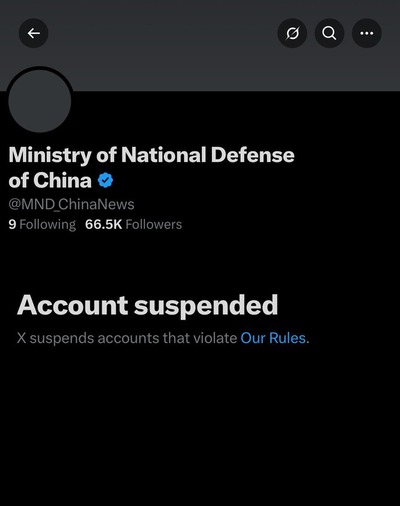 【速報】中国国防省のXアカウントが凍結、最高のオチで大喜利大会が幕を閉じた