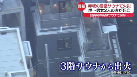 【東京・赤坂】個室プライベートサウナ「サウナタイガー」で火災、30代男女2人が死亡…