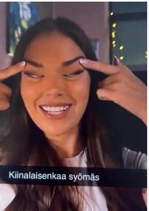 【悲報】ミスフィンランド、例のポーズでアジア人を侮辱 (※画像あり)